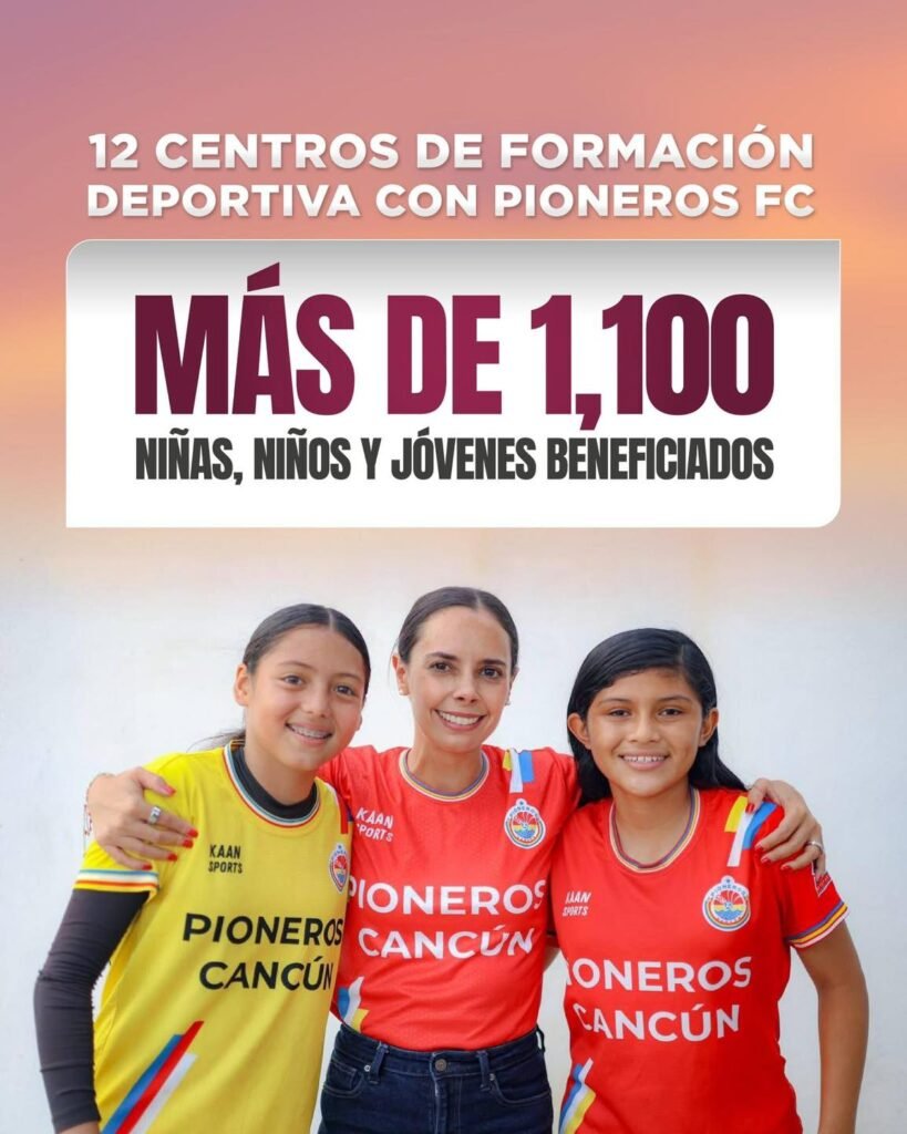 12 Centros de Formación Deportiva con Pioneros FC, donde más de 1,100 niñas, niños y jóvenes.